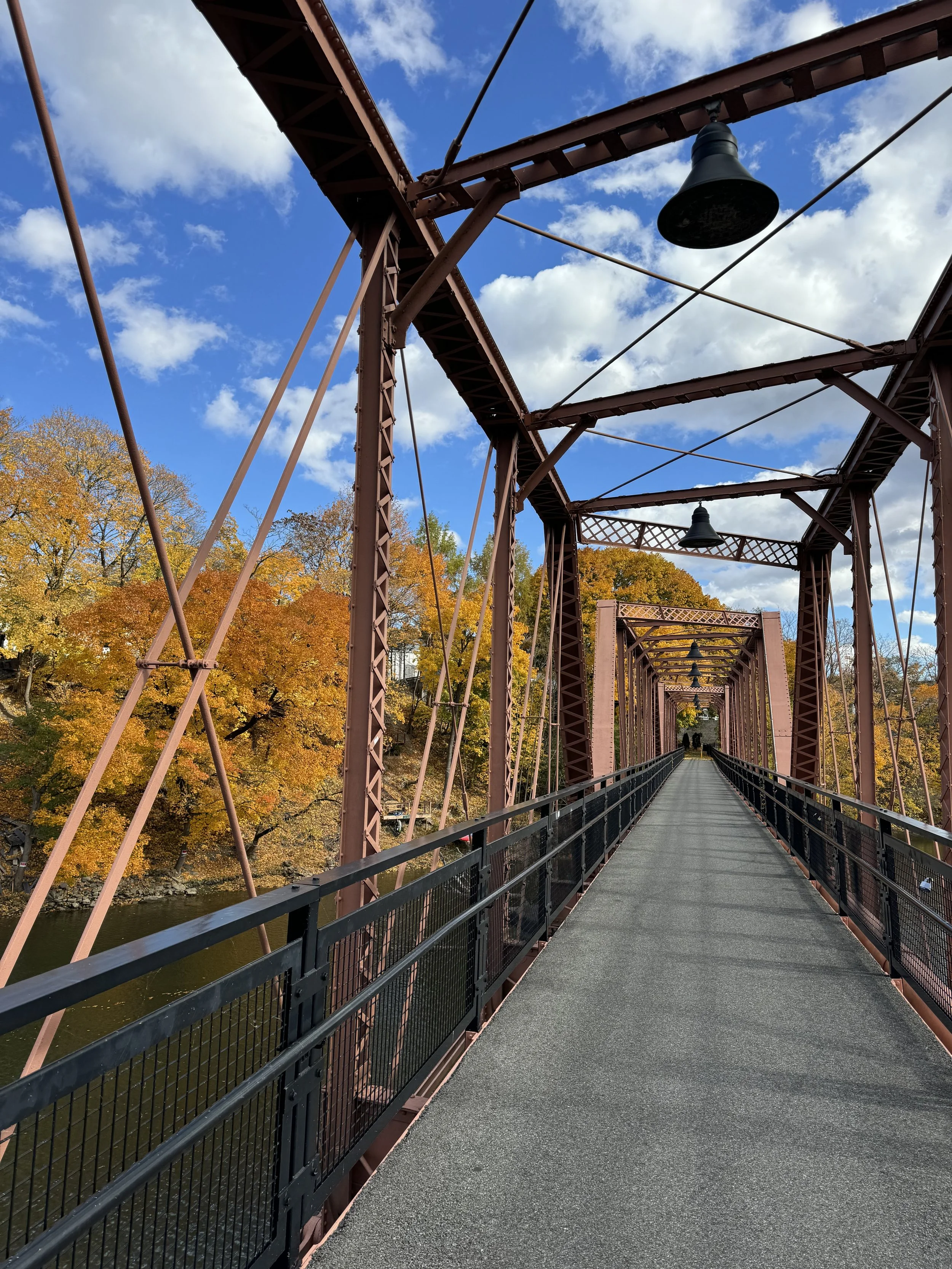 The Black Bridge in Catskill is one of those "hidden in plain sight" spots that people often miss. This simple pedestrian bridge crosses Catskill Creek and offers some of the easiest fall foliage viewing in the area - no hiking boots or mountain driving required.